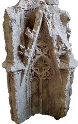 Acest fragment este însă unul care are și o pregnantă componentă estetică. Decorul minuţios şi foarte fin, traforajul delicat şi diferit al fiecărei laturi, toate ne introduc în lumea mult mai rafinată a stilului “gotic rayonnant”. Putem intui faptul că a fost parte a unei construcții interioare înalte, poate acoperişul unui amvon, în formă de baldachin, de unde se țineau predici către credincioșii prezenți la slujbă. Putem însă să ne lăsăm pradă imaginației și să ne închipuim la fel de bine faptul că acest vârf de fială era parte din acoperişul unui altar, tot sub formă de baldachin.